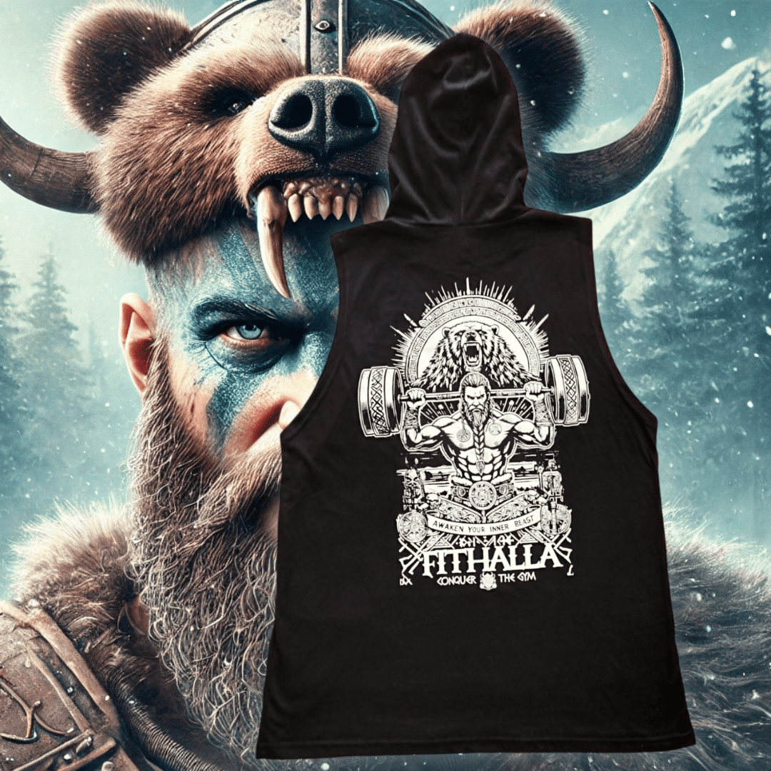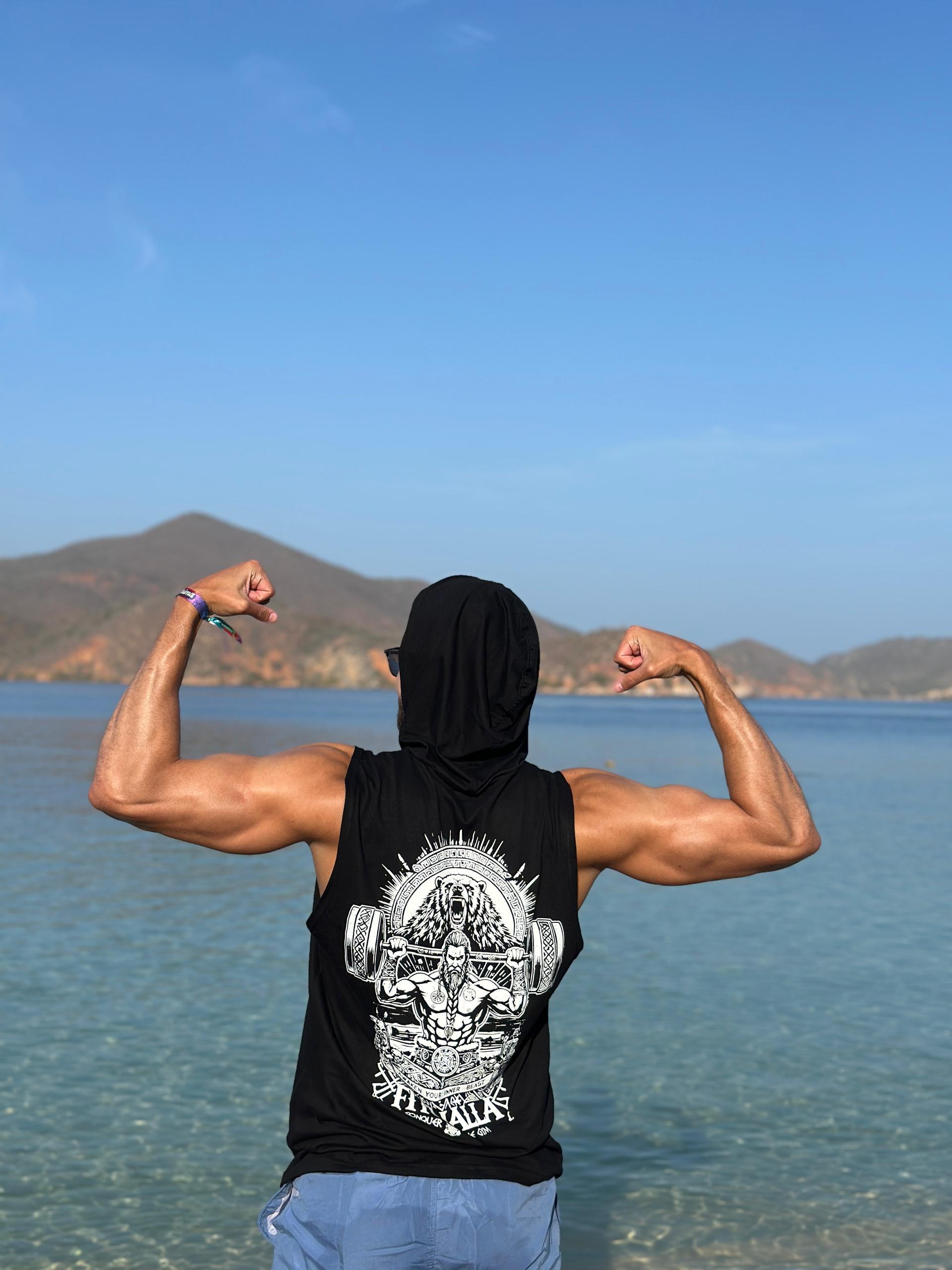 DISEÑO: Enfrenta tus entrenamientos con la determinación de un verdadero guerrero vikingo. Esta musculosa con capucha representa la conexión entre la fuerza física y el poder interior, mostrando a un guerrero levantando pesas bajo la protección de su espíritu animal. Es más que una prenda: es un llamado a liberar tu esencia más poderosa en cada repetición. Diseñada para quienes no temen ir más allá, fabricada con materiales premium que acompañan tu rendimiento y destacan tu estilo único en el gimnasio o donde quieras conquistar.