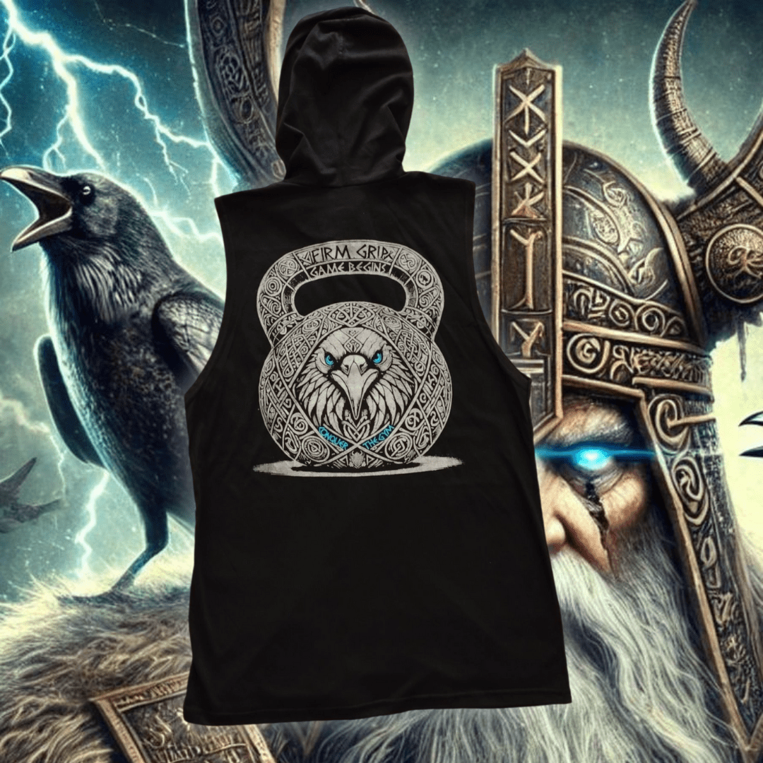 DISEÑO: Esta musculosa rinde homenaje a los míticos cuervos nórdicos, Hugin y Munin, quienes simbolizan el pensamiento y la memoria, valores esenciales para superar cualquier desafío. Con un diseño impactante que combina un kettlebell con runas vikingas y la mirada penetrante de un cuervo, esta prenda te conecta con la fuerza y sabiduría de los dioses nórdicos. Perfecta para entrenamientos intensos, está fabricada con materiales de alta calidad que garantizan comodidad y estilo, ayudándote a conquistar cada meta con determinación.